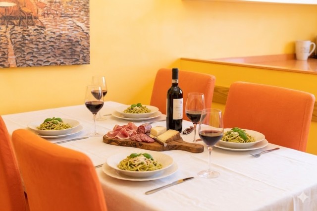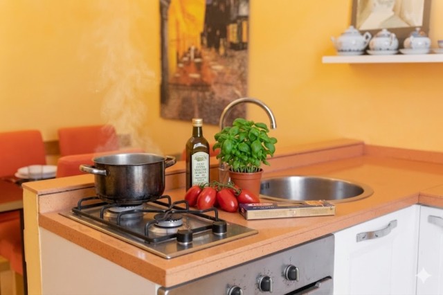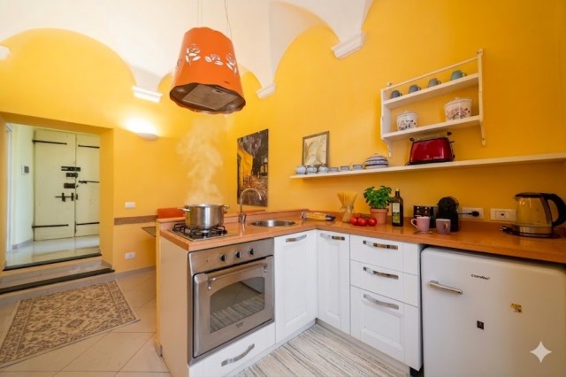 Dotazioni incluse: aria condizionata, riscaldamento, connessione wifi, lavatrice, asciugatrice, cucina con piano cottura a 2 fuochi a gas, frigorifero con celletta refrigerante, bollitore, tostapane, macchina del caffè (capsule Nespresso) e TV.