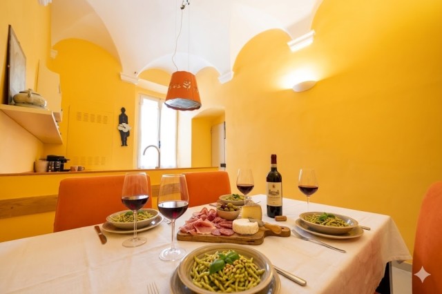 Ci troviamo nel centro storico di Cervo, tipico borgo medievale (pertanto non è possibile raggiungere la casa con l'auto - parcheggio pubblico fuori dal borgo a circa 300m) a 700m dalla famosa spiaggia "il Porteghetto". Botteghe, supermarket, negozi, banca, farmacia e locali del divertimento sono raggiungibili in 5 minuti di auto.
