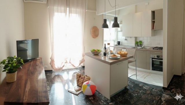 Bilocale ristrutturato a Imperia, zona Ferriere, posto al secondo piano con ascensore. La casa è composta da soggiorno con angolo cottura, una camera matrimoniale, bagno e balcone. Può accogliere fino a 3 persone.