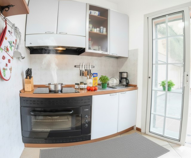 Die Räume sind komfortabel und funktional: Induktionskochfeld, Elektrobackofen, Kühlschrank mit Gefrierfach, Klimaanlage, autonome Heizung, WLAN (gegen Aufpreis), Garagenstellplatz und separater Waschraum – ideal auch für längere Aufenthalte.