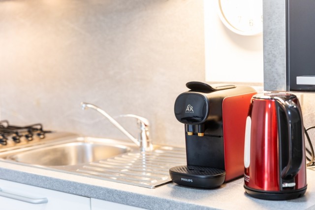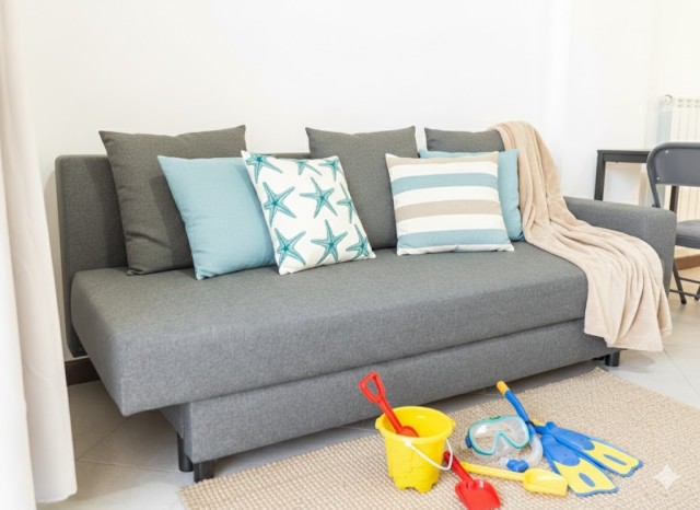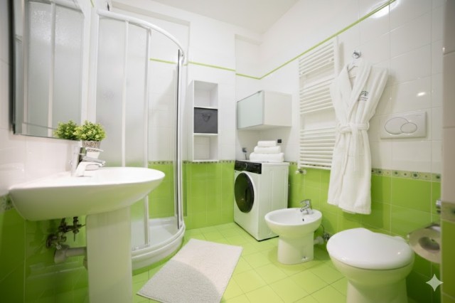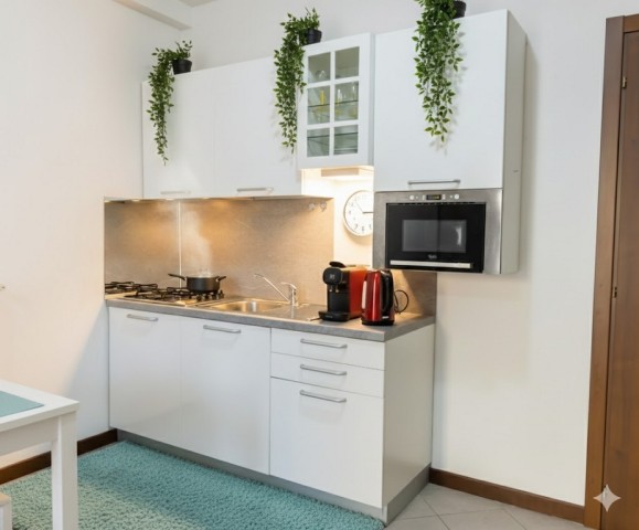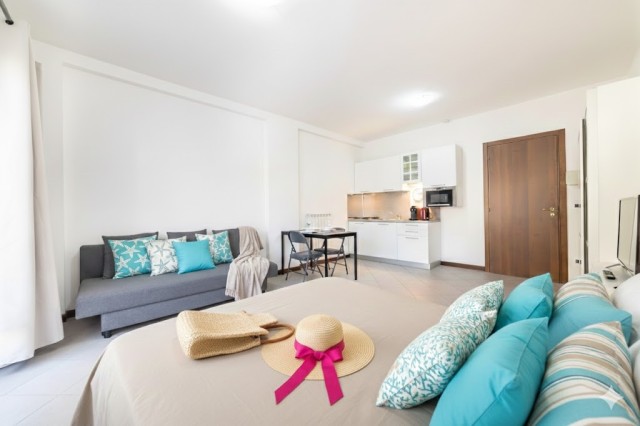 Ausstattung: TV mit italienischen Sendern, WLAN, Waschmaschine, autonome Heizung, Klimaanlage, Bügeleisen und -brett, Föhn, Mikrowelle, Kühlschrank mit Gefrierfach, Gasherd (4 Flammen), Wasserkocher, Toaster und Staubsauger.