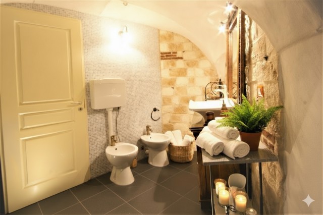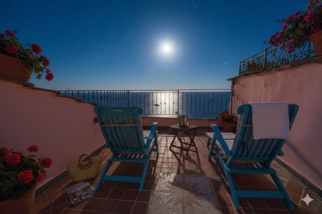 Das Haus erstreckt sich über mehrere Ebenen und bietet Platz für bis zu 6 Personen. Erdgeschoss: zwei Schlafzimmer mit Doppelbett und ein Badezimmer mit Dusche. Erster Stock: Wohnzimmer mit Doppelschlafsofa, voll ausgestattete Küche und Badezimmer. Dritter und oberster Stock: private Dachterrasse mit 180°-Meerblick.