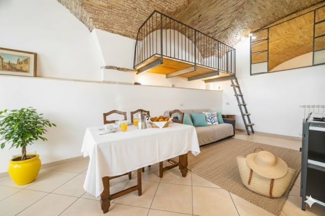 Moderne, komplett renovierte 2-Zimmer-Wohnung mit charakteristischen Gewölbedecken aus Naturstein.