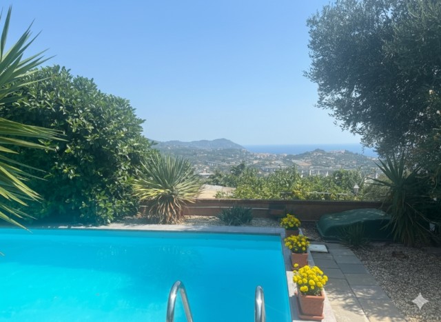 Villa con piscina, terrazza vista mare, aria condizionata e WiFi.